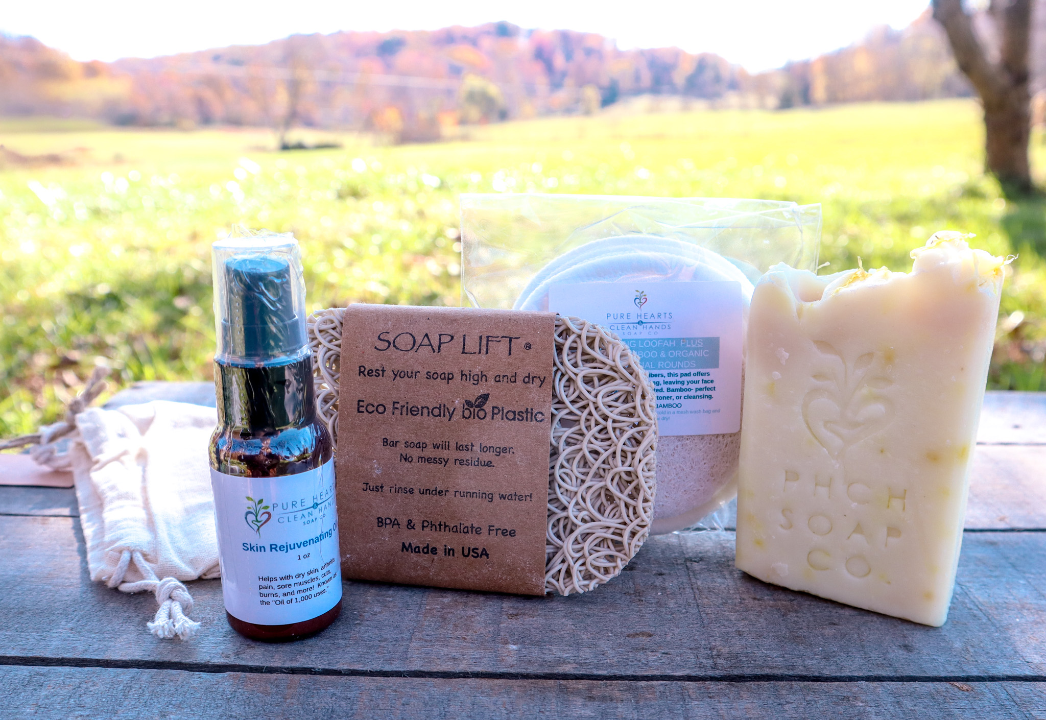 A refreshing facial care set featuring our Orange Flowers soap, rejuvenating oil, soap lift, and natural loofa with reusable cotton rounds—everything you need for a naturally bright, nourishing skincare routine.